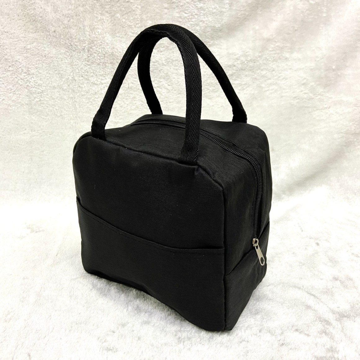 Bolsa térmica simples lisa preta com fechamento a zíper e por dentro é forrada de alúminio.