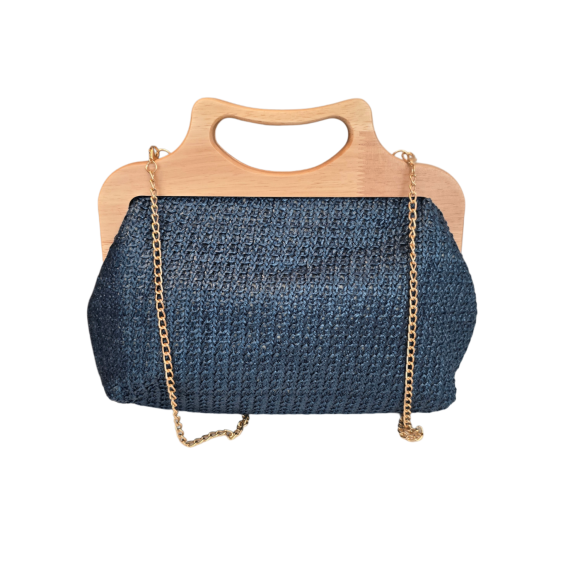 BOLSA LUXO ACABAMENTO EM MADEIRA ALÇA CORAÇÃO